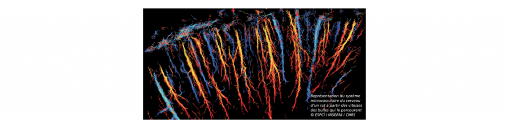 Les capillaires sanguins jouent un rôle majeur pour le fonctionnement du cerveau. L’équipe de Mickael Tanter (ESPCI/Inserm/CNRS) rapporte dans la revue Nature comment il est possible de les observer chez le rat avec une résolution temporelle hors du commun à l’échelle microscopique grâce à une nouvelle méthode utilisant les ultrasons ultrarapides. La microscopie par localisation ultrasonore ultrarapide (uULM) représente une avancée cruciale pour aider la communauté des Neurosciences à mieux appréhender comment le système vasculaire collabore au fonctionnement normal du système nerveux et possiblement comment ses dysfonctionnements pourraient intervenir dans les maladies neurologiques.