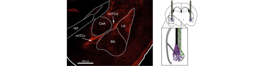 Zussy C, Gomez-Santacana X, Rovira X, De Bundel D, Ferrazzo S, Bosch D, Asede D, Malhaire F, Acher F, Giraldo J, Valjent E, Ehrlich I, Ferraguti F, Pin JP, Llebaria A, Goudet C (2018) Optical activation of endogenous metabotropic glutamate receptor 4 (mGlu4) in the amygdala dynamically regulates symptoms associated with persistent inflammatory pain. Mol Psychiatry 23: 489