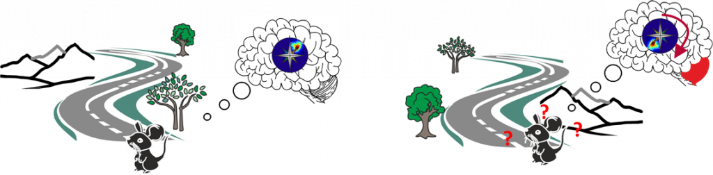 Savoir s’orienter pour trouver son chemin vers une destination donnée est une fonction essentielle à chaque être vivant. Fermez les yeux à l’endroit où vous vous trouvez et visualisez l’endroit où vous souhaitez aller. Une image de l’environnement et le chemin à prendre viennent de se former mentalement, suggérant que notre cerveau construit des représentations mentales de notre environnement et des capacités de calcul qui lui permettent de répondre comportementalement à ces questions. L’étude de la cognition spatiale offre ainsi un cadre de travail qui s’attaque à un problème passionnant mais complexe. En effet, les informations sensorielles sont multimodales et proviennent aussi bien de l’environnement que du déplacement du navigateur. Par conséquent, comment le cerveau traite-t-il l’ensemble de ces signaux sensoriels afin de générer une représentation du monde cohérente d’une part et produire un déplacement efficace du navigateur d’autre part? Plusieurs décennies de recherche ont révélé dans l’hippocampe et plusieurs structures anatomiquement connectées, l’existence de neurones dont l’activité est modulée par l’espace : les cellules de lieu et de grille ainsi que celles de direction de la tête ou encore de bordure. L’ensemble de ces neurones forme une représentation neurale du monde qui nous entoure. Cependant une question clef demeure non résolue : comment cette représentation mentale, appelée également carte spatiale, est-elle maintenu stable alors que nous nous déplaçons continuellement ?